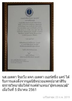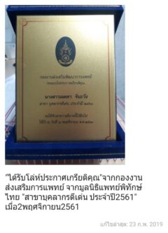 คุณเมตตา จินะวัง ผู้บริหารศูนย์เมตตาเนอร์สซิ่งแคร์ ได้ขึ้นรับรางวัลโล่เกรียติยศในงานวัฒนธรรศแห่งสยาม เนื่องในวันอนุรักษ์มรดกไทย สาขาเกรียติคุณผู้อนุรักษ์ความเป็นไทย ต่อยอดการบริหารธุรกิจและส่งเสริมยอดการขาย เมื่อวันที่5เมษายน2568 ณ.ที่หอประชุมคุรุสภา กระทรวงศึกษาธิการ
