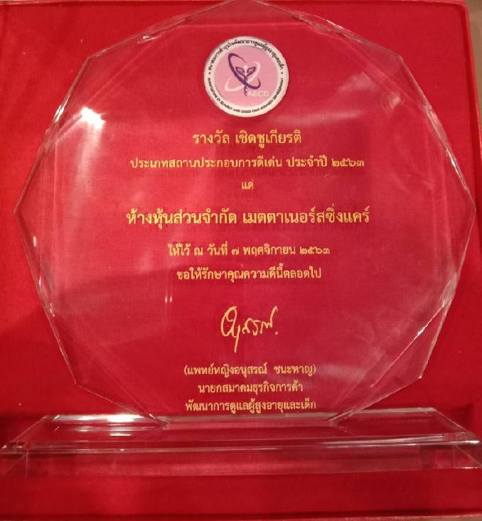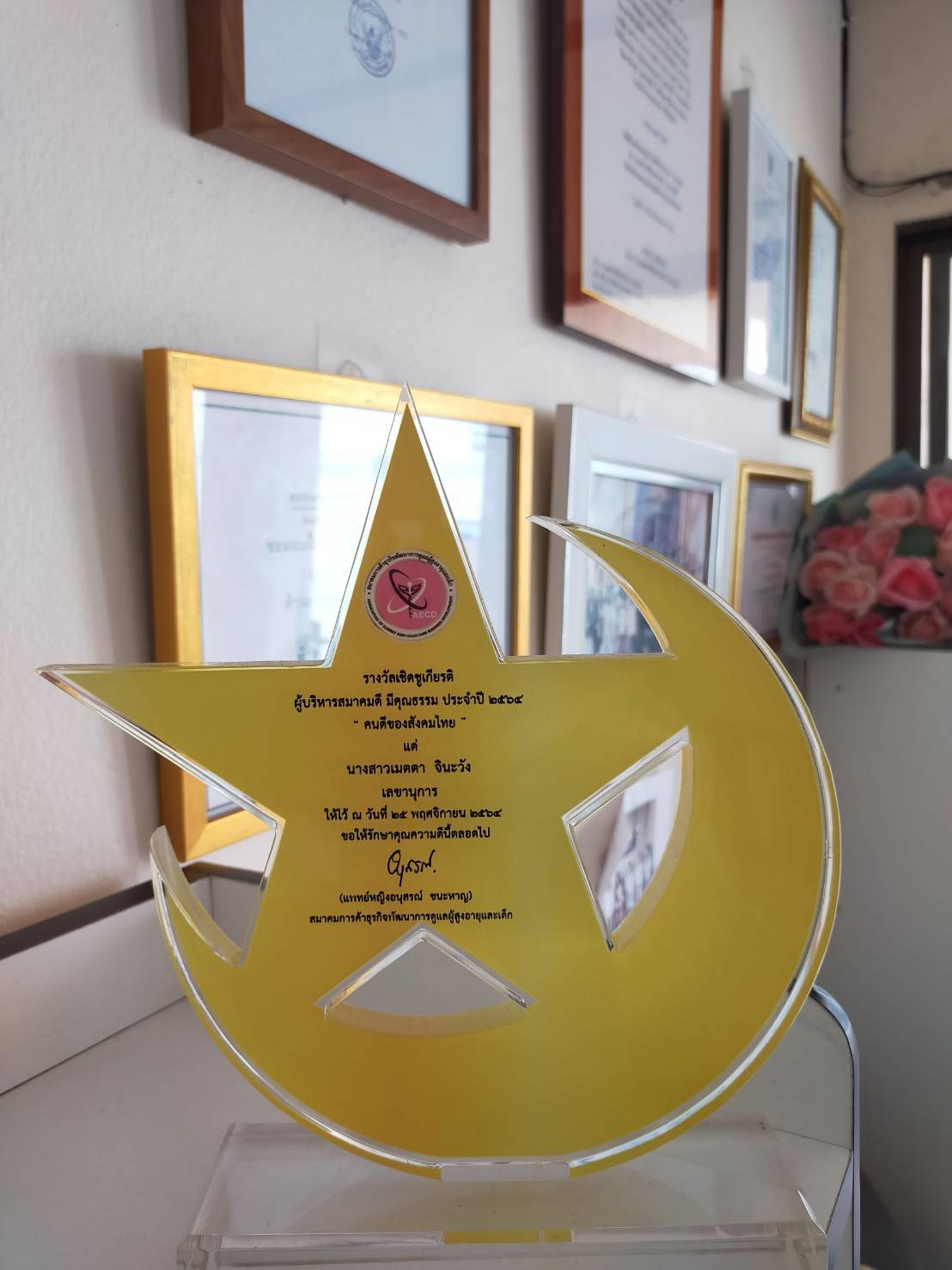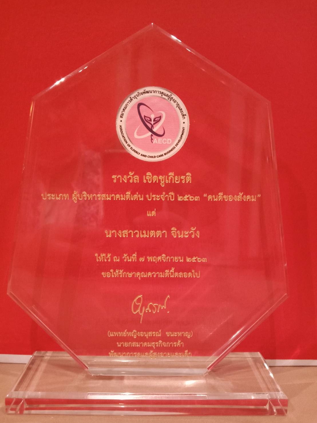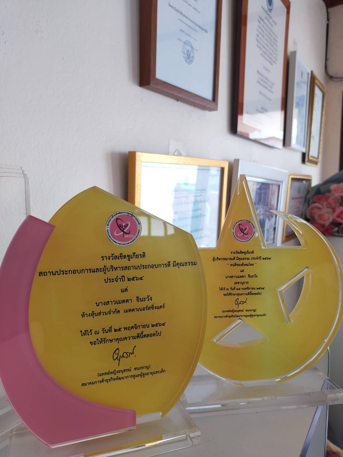คุณเมตตา จินะวัง ผู้บริหารศูนย์เมตตาเนอร์สซิ่งแคร์ ได้ขึ้นรับรางวัลโล่เกรียติยศในงานวัฒนธรรศแห่งสยาม เนื่องในวันอนุรักษ์มรดกไทย สาขาเกรียติคุณผู้อนุรักษ์ความเป็นไทย ต่อยอดการบริหารธุรกิจและส่งเสริมยอดการขาย เมื่อวันที่5เมษายน2568 ณ.ที่หอประชุมคุรุสภา กระทรวงศึกษาธิการ